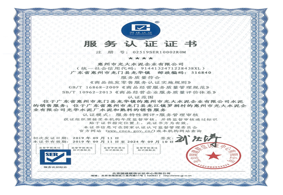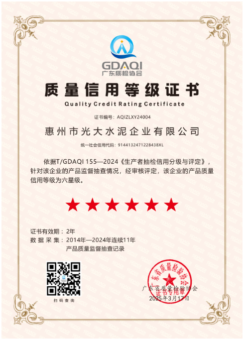 更多光大水泥榮獲廣東省質(zhì)量信用最高等級榮譽(yù)證書[2025-05-16]